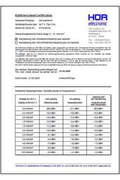 Überprüfung/Kalibrierung mit Zertifikat & Protokoll