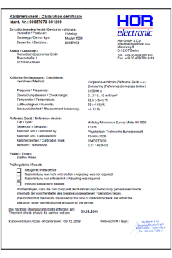 Überprüfung/Kalibrierung mit Zertifikat